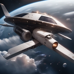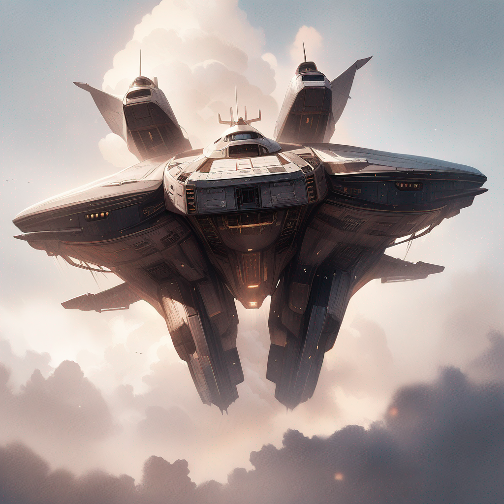 This spaceship looks like it merged with a flying saucer. The clouds in the image are a little out of place.