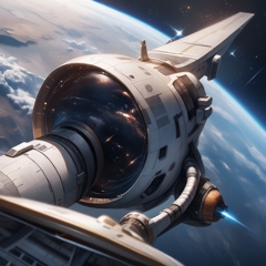 , which is a model that specializes with anime style images. All of the generated images use the tags "realistic" and "spaceship".