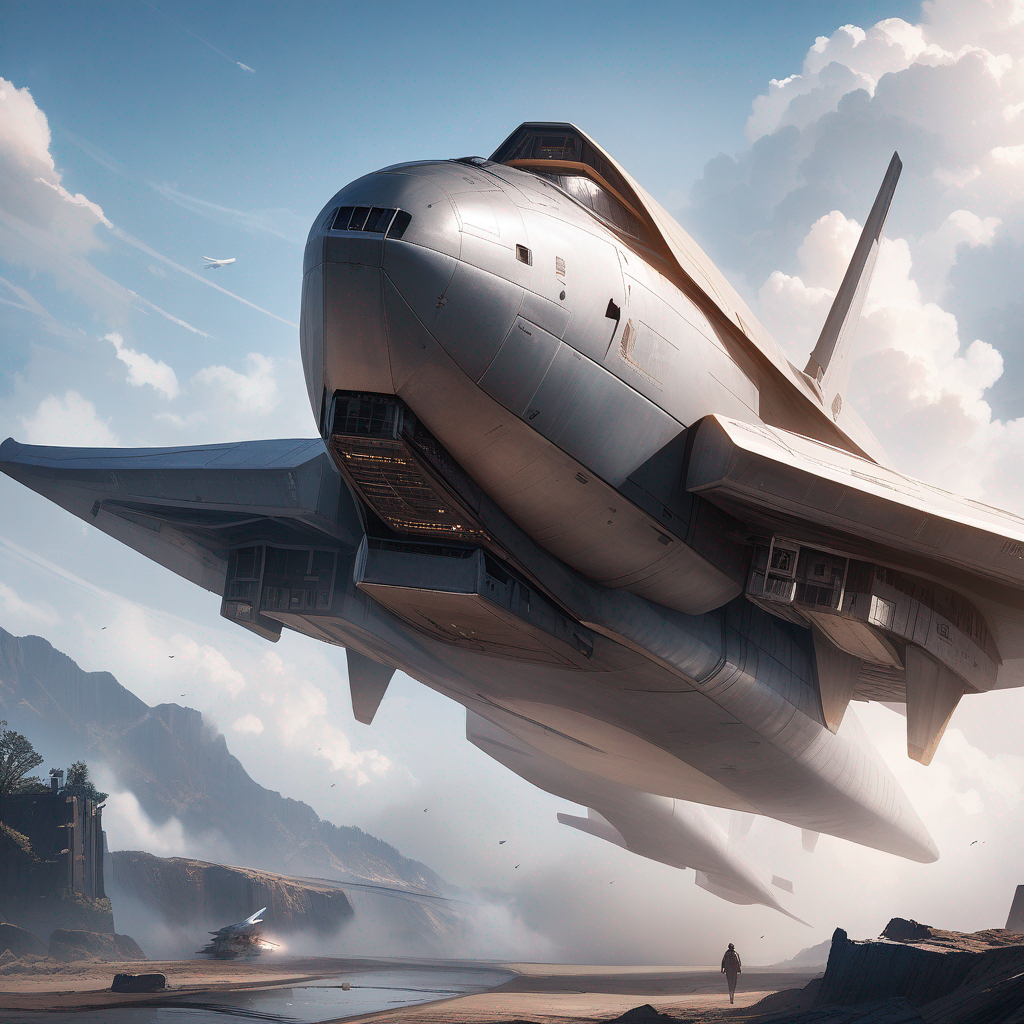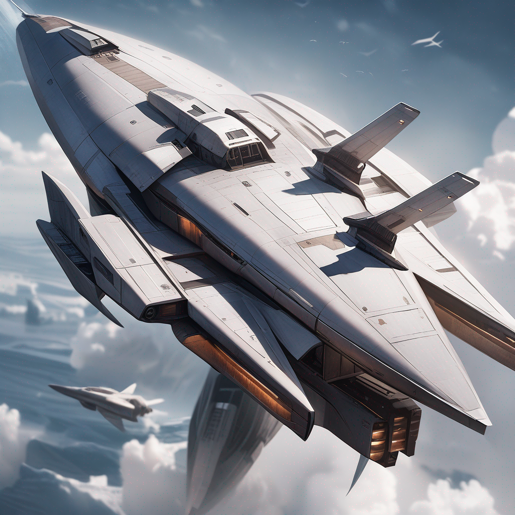 This spaceship looks like it merged with a flying saucer. The clouds in the image are a little out of place.